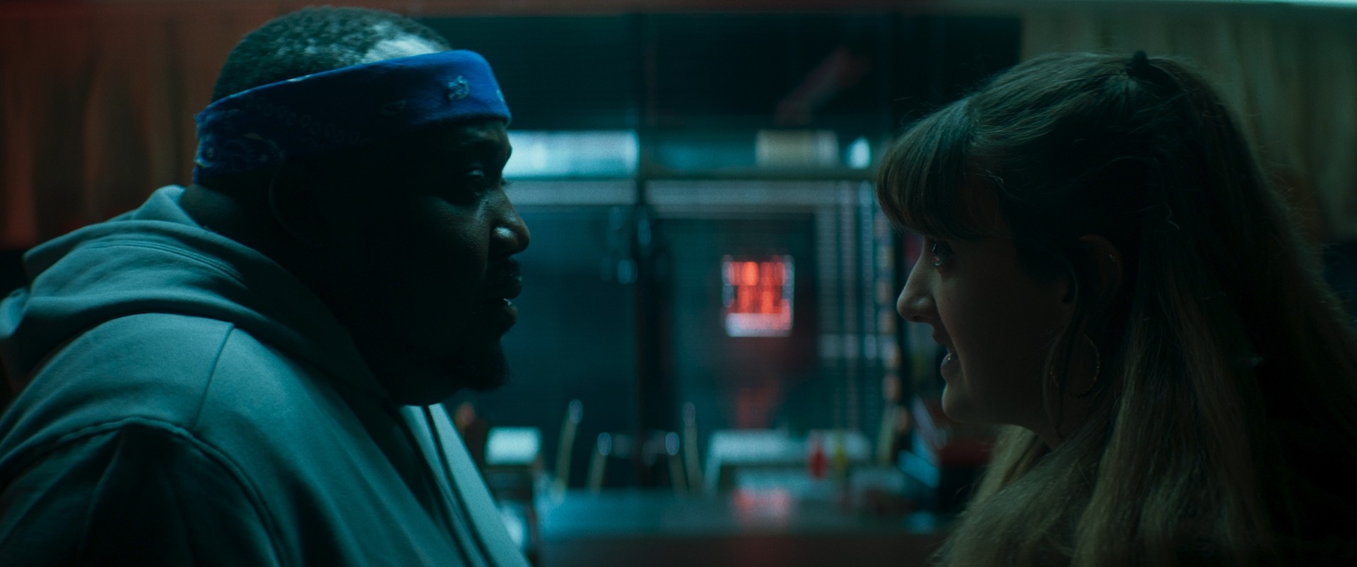 The entire script, apart from a brief eighth of a page at the beginning and end, was set at night, as the story occurs in the span of just one night shift at the diner. As much as it hurt, physically and emotionally, that the majority of the shooting schedule had us working on location from sunset till sunrise, it provided an exciting opportunity to explore the darkness in the story emotionally. In a practical sense it also gave us an empty canvas from which we could shape the image and the overall feel of the film. Knowing that going in, it became a very practical and tangible anchor and a reliable constant for most of the shoot. I could work my way back to the comedy elements - whilst maintaining a cohesive, yet constantly evolving, feel to the image.